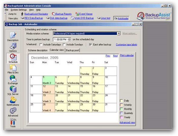 BackupAssist是一款针对企业或者其他组织的数据备份工具,支持计划任务功能,可以选择合适的备份介质如光盘,软盘,磁带等,支持通过email发送备份日志和通过email提醒秘书更换磁带等功能,最新版本改善服务性能,修正服务超时崩溃的bug,更好的处理不正确的授权操作。