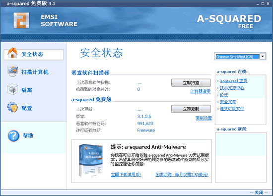 a-squared V4.0.0.73 多国语言绿色免费版 a-squared Anti-Malware(a²) 是一款来自欧洲,可以清理隐藏于计算机中的恶意程序的软件。它的界面简单清楚,操作容易,而且还可以随时通过在线更新最新的恶意软件资料,不怕被新出的恶意软件感染。