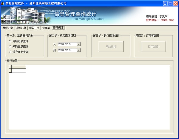 信息管理软件 v1.0 绿色版 办公室用餐、采购、支出信息统计管理程序,相信每一个办公室管理人员都会对本程序感兴趣,这是曾经给某市政府部门办公室制作的,很久以前的了。信息管理软件,能帮助您解决这系列问题。