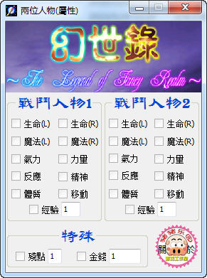 幻世录简中版修改器v1.06 绿色版 幻世录简中版修改器是同名游戏的辅助工具,添加了生命,魔法,气力,反应等11项功能,帮助玩家顺利完成游戏