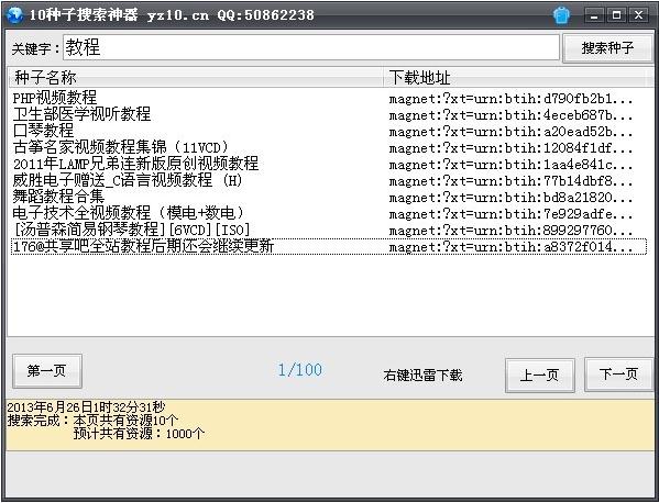 10种子搜索神器是一款针对p2p.ed2k网络中的资源进行搜索的小工具,通过10种子搜索神器能让您快速的方便进行种子搜索,下载速度快,资源多!欢迎下载使用。