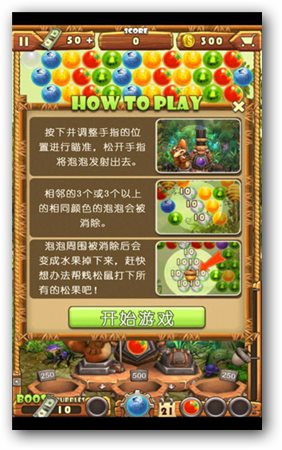 松果传说:一款泡泡龙式的消除游戏,游戏在泡泡龙基础上有很大的改进