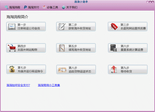 海淘小助手,手把手教您如何进行在国外网站进行购物、支付以及托运,是您海淘时不可或缺的小工具。