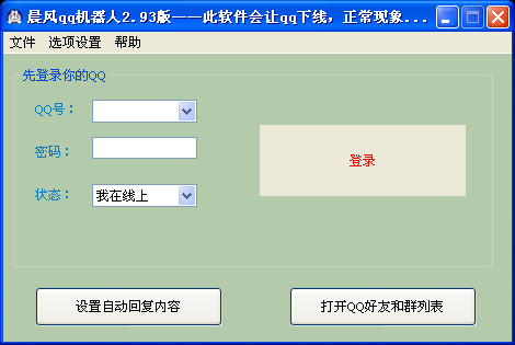 第一步、登陆qq打开晨风qq聊天机器人后,界面输入QQ账号及密码即可登陆。