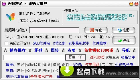 一款采集屏幕颜色的软件,软件不大,但是功能强大,实用性强,易操作,对网页设计师、photoshop、corldraw等平面设计师处理颜色是一个非常好的帮手,特别对网页设计师有更大的帮助,本软件会自动生成网页十六进制代码,只要在网页代码内粘贴就可以把想要的颜色显示在网页上;还能分离红、绿、蓝三颜色值;可以对三种颜色做不同的调整;如此酷的工具还不快快下载,把她带回家?^-^
