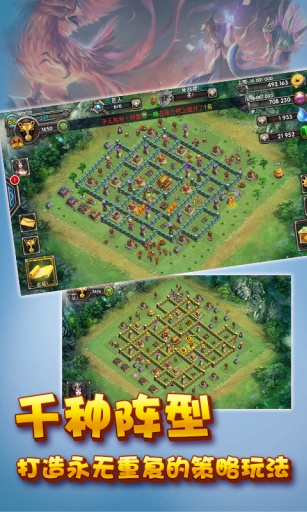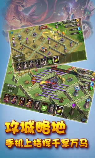 城市可以自由设计,比如城墙、建筑、资源库、防御器械可以自由移动。城墙、投石车、弩车、震天箭、箭塔属于防御建筑,军营、驻扎地、祭天台等属于进攻建筑,匠人居、神元鼎、钱库、神元炉、金矿等属于资源建筑,这些东西都可以在商店里买到,后期可以升级。画面真实细腻,有比较强的古代战斗感。