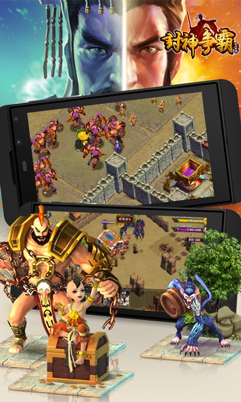 封神争霸糅合模拟经营、塔防、即时战争等多种游戏元素,为玩家提供一个商周战火肆虐下称雄全球的对战平台。在游戏中,玩家可以匹配神射手、金甲力士等丰富的兵种,个性化的组建数十种类型的军队。同时,可以挑选6种各具特色的攻防建筑构建起属于自己的帝国城池,亲身参与多达50场史诗征战。玩家可以组建10种不同单位的军队去对抗其它真实玩家使用6种各具特色的防御建筑组建的塔防。3D视觉,高清画面,玄幻风格,真人玩家PVP战斗,玩转自由摆阵和策略组合式即时战斗玩法,让您亲身体验攻城略地、金银满仓的游戏乐趣!