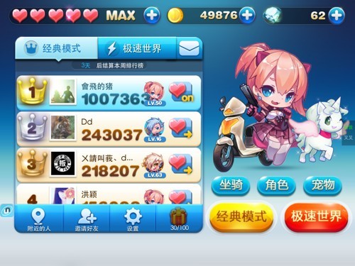 5、开局会直接飞行,到分数在40W左右,距离在23000左右(前提距离一定不能超过24400。不然会失败的)点暂停,返回排行榜,这个时候如果没有提示异常,我们刷分就成功了!