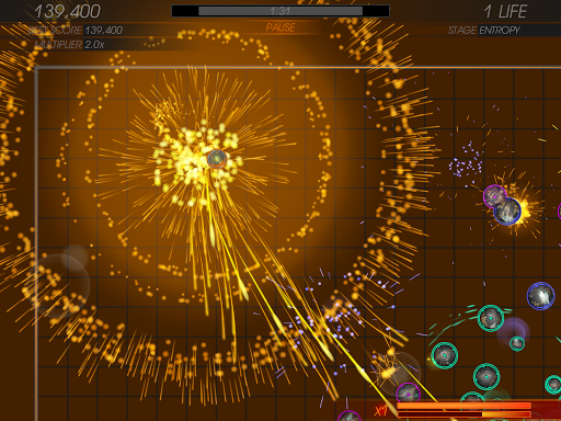 Ballistic SE华丽的子弹和激烈的战斗过程。享受简单而纯粹的飞行射击游戏乐趣吧。《Ballistic SE》旨在为玩家带来完全纯粹的飞行射击游戏乐趣,没有任何的故事剧情设定,玩家只需要在一波接一波的战斗之中,竭尽全力的消灭出现的敌人并且生存下去即可。各种色彩各异的圆球状敌人,会以各自不同的攻击模式,来向玩家发动疯狂的攻击和追踪。而玩家则需要凭借着自己的武器,来向这些疯狂的敌人倾斜下猛烈的炮火,让其在爆炸之中化为点点光芒。游戏的整体画面视觉效果,会呈现出一种独特的彩色粒子效果,十分具有科幻感。配合节奏快速的电子乐,使得游戏整个的战斗节奏和体验十分的爽快。