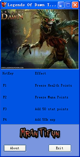 使用说明 F1 - 锁生命 F2 - 锁魔法 F3 - +50属性点 F4 - +50.000经验