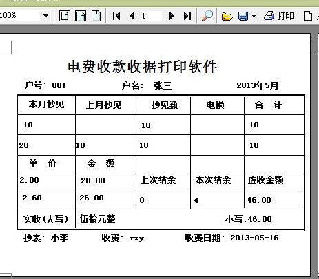 易达电费收款收据打印专业版:系统自动带出上月电抄表度数和户号电费单价,自动计算电用量和金额。 软件操作简单直观。