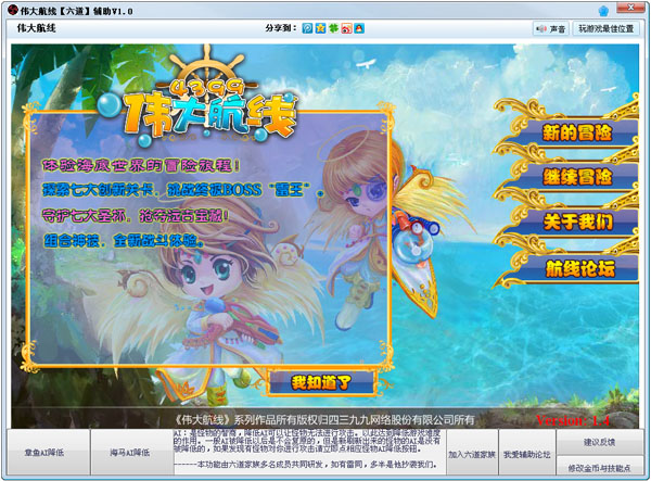 伟大航线辅助是专用于4399伟大航线游戏的修改器工具,伟大航线是一款全新横版泡泡堂玩法网页游戏,目前已经正式上线,使用本辅助,能够轻松降低怪物的AI,增添游戏乐趣,后续将带来更多功能,敬请期待。
