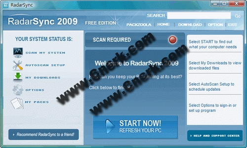 RadarSync 2010 V3.510 英文绿色免费版 驱动程序更新雷达 - RadarSync,安装完这个软件后,它会自动取得您的硬件系统信息,选取「Start」来激活监控功能,便可以自动联机到软件公司的服务器,检查有无新的驱动程序可以下载,每当您计算机中的驱动程序有新版时,就会提醒您是否作更新