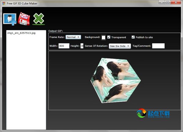 照片3D旋转方块制作(Free Gif 3D Cube Maker)让你可以创建一个 3D的立体模型,每一个面就是一张相片,并可调整立体面的大小。