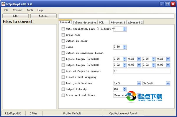 用于 kindle的PDF转换器 k2pdfopt 的图形用户界面k2pdfopt GUI 是一个有用的应用程序,旨在为您提供前端PDF和DJVU文件优化程序,通过命令行运行。
