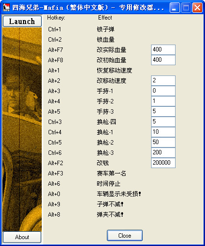 四海兄弟修改器是同名游戏的一款游戏辅助工具,功能强大,子弹,时间,手枪什么的都能修改,保证让你轻轻松松通关