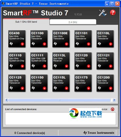 SmartRF™ Studio 支持 TI 所有低功耗 RF-IC。请注意,您可能需要使用该工具的较早版本方可操作较旧的设备。