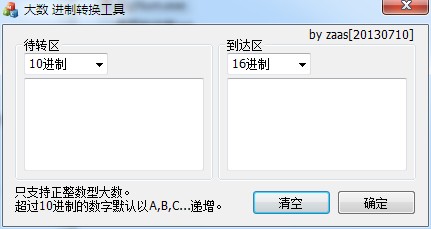 大数进制转换工具只支持正整数这类型的大数,超过10进制的数字默认已a、b、c、递增!