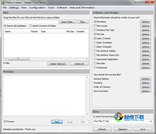 Filellist Creator是完全兼容Unicode的。这意味着,你可以轻松地创建文件包含Unicode字符,你可以使用Unicode的所有设置,如在标题列的列表。即使当您保存清单,所有常见的Unicode格式,并支持ANSI格式(文件格式)。