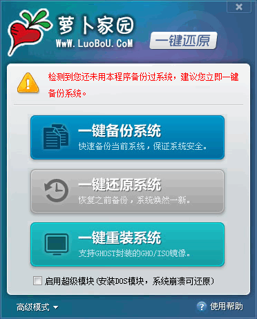 萝卜家园一键还原系统是现在非常流行的一款系统还原工具,这款一键还原工具的界面清晰,操作简单,即使是新手也可以轻松上手,为了一防万一,小编截了一组图,用文字和图片结合的方式教会大家使用这款软件。