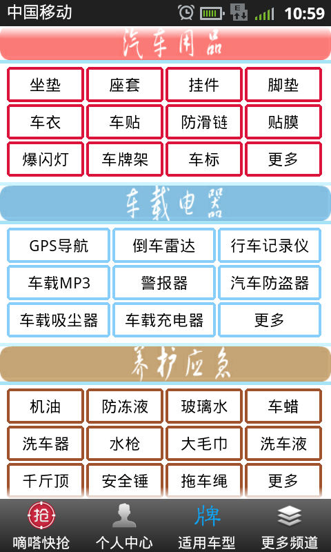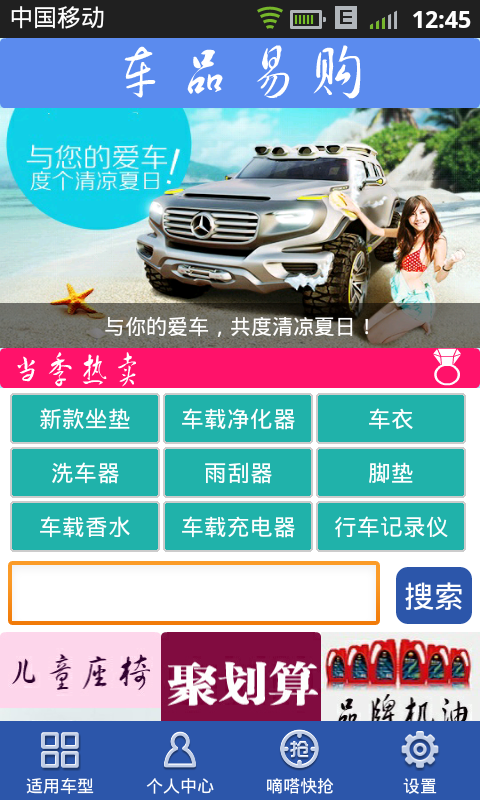 车品易购我的爱车用品超市。轻松手机淘宝购车品,感受随时随地的购物乐趣!随时同步淘宝网、天猫、聚划算最新优惠动态,各种车品特卖特价第一时间掌握!轻松下单,安心,放心,随时随地,方便快捷的购物体验!