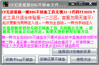 第二种,是在第一种进游戏BUG还掉血情况下,可使用第二种注入方式,选择CF目录点击一键BUG不掉血即可。