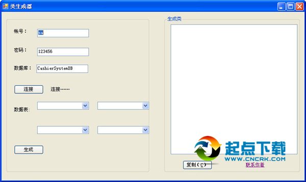简易类生成器 v1.0 绿色版 简易类生成器,通过搜索本地的数据库中的某个表,自动创建该类的相关属性和方法。