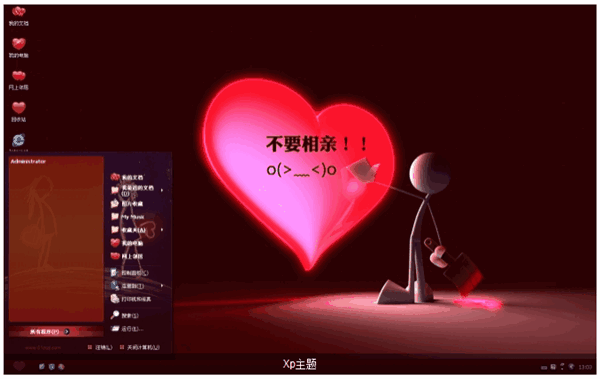 不要相亲桌面主题就是一个小人拿着刷子在墙上画着一个心形,写着“不要相亲”的字样呢,希望周围的亲戚朋友理解他们现在的心情~