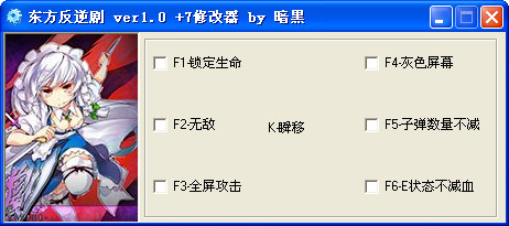 东方反逆剧修改器 v1.0 绿色免费版 东方反逆剧修改器是同名游戏东方反逆剧的辅助工具,有了这款修改器让满屏的子弹见鬼去吧,因为我可以无敌,可以不死了,帮助玩家顺利完成游戏哦