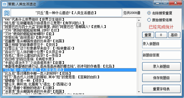 日常知识问答答案搜索器,共收录2009道各类日常竞赛包括网络单招试题及答案,其中912道为qq华夏夫子题库。
