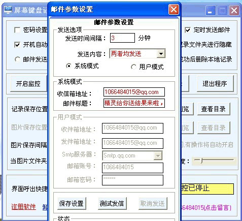 3、定时将记录下来的图片及文本发送到您指定的邮箱中。