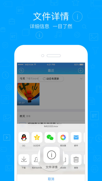 电脑上的文档、图片,手机上照样能打开,随时随地可以查看,重要文件加星还可离线阅读