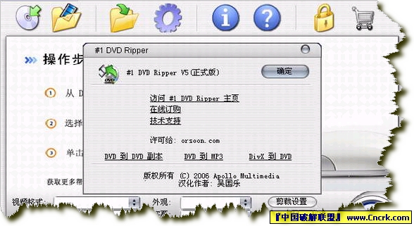 #1 DVD Ripper 是一款功能强大而且非常容易使用的DVD备份软件,使用本程序,你可以轻松的将DVD影片备份为VCD(MPEG1)或者SVCD格式(MPEG2),也可以转换为AVI或DIVX(MPEG4)等多媒体文件格式,程序将DVD影片备份为相同视频质量的DIVX文件而体积只有原来的10%,支持批量转换功能,内置快捷属性设置面板,非常容易使用!