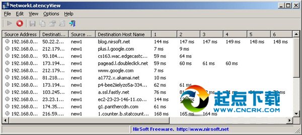 NetworkLatencyView是一个简单的工具为Windows在您的系统上侦听的TCP连接,并计算您的系统上检测到的每一个新的TCP连接的网络延迟(以毫秒为单位)。对于每一个IP地址,NetworkLatencyView显示多达10个网络延迟值,其平均。的的延迟值由NetworkLatencyView计算是非常相似的结果,你会得到相同的IP地址ping命令。