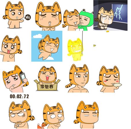 虎阿油QQ表情包包含做鬼脸 挖鼻孔 躲雨 捏脸 数钱 生气 撒尿 HI 发骚 蹭蹭 伤心 BYEBYE 开灯 财迷 自拍 臭美 求包养 扭一扭 下班了 惊讶 等表情。