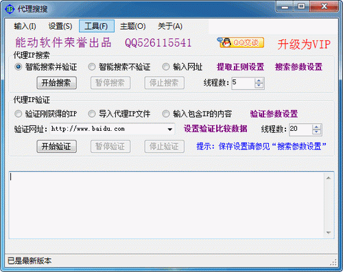 代理搜搜--是一款集代理智能搜索、验证的软件;随时可搜索到最新的代理ip,并可验证是否高匿ip,以便各种场合的需要;软件内置ip提取的几种常用正则,并可自设提取正则进行提取;软件实现爬虫式搜索,即只需输入一个网址可实现整个网站的所有页面的搜索或是页面上有的其它网站的搜索;软件实现多线程(搜索线程最高达50,验证线程最高达200),运行速度超快;软件可以搜索到http代理以及socket代理,但只能验证http代理,不能验证socket代理