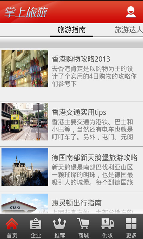掌上旅游,最贴心的旅游生活服务应用,平时没时间查攻略,路上找不到景点干着急,想去户外旅游,为缺乏装备而烦恼? 不用担心,您只需要本应用集合了资讯、旅游攻略、旅游购物、出行指南、美食、交通、住宿。随身携带随手查,给您轻松的旅游体验!