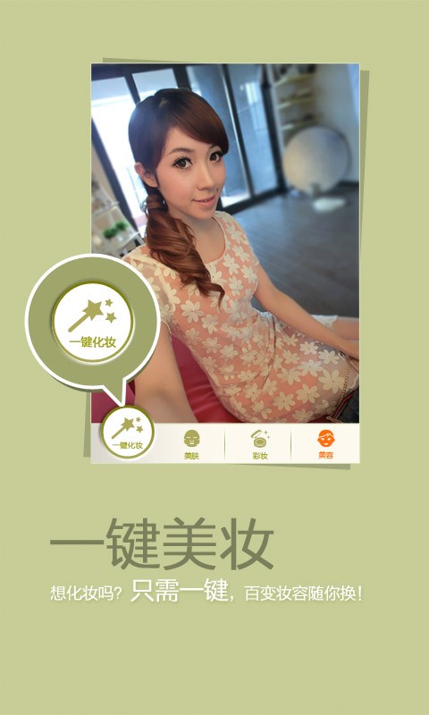 一键化妆:选择喜欢的模板,一键轻松完成整个化妆,美图过程,自然的效果完美呈现;