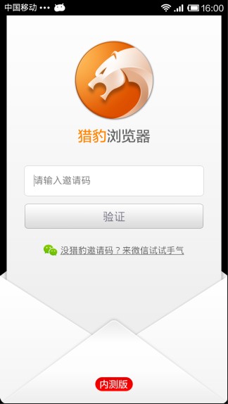 注意:内测版需要邀请码验证【猎豹浏览器手机版产品功能展示】