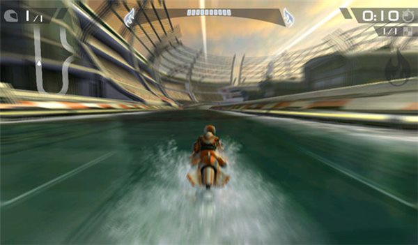 水的效果非常逼真,开着快艇比赛的时候,感觉听到水花溅起的声音,耳旁还有风呼啸而过,身临其境之感!那山路十八弯也比不上这赛道十九弯,绝对的惊险刺激!还有那快艇的金属感,那3D模型,非常的真实!