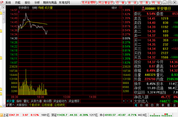 28).TAB的用途:在行情报价画面,切换行情信息和财务信息,在分时图画面,切换上下午半场,在分析图画面,叠加或删除叠加均线