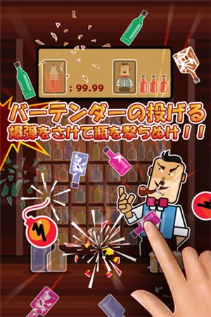 酒保会不停的把瓶子抛出来。点击一下就可以打破。