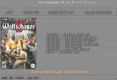 狼穴2修改器是同名游戏狼穴2的比不可缺少的游戏辅助工具之一,修改器添加了无限生命,无限体力等6个功能,帮助你快速完成游戏哦。狼穴2是一款第一人称射击游戏大作,不入虎穴,焉得虎子,你的任务是窃取一个加密的机器和它的密码本,难度很大,期待您的挑战