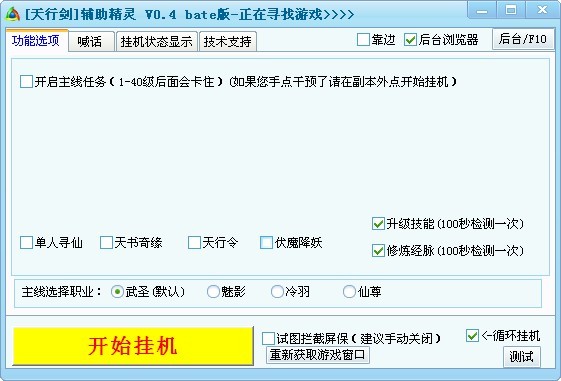 天行剑辅助是同名游戏天行剑的游戏辅助,天行剑辅助可以通过模拟键盘鼠标工作来实现自动游戏的功能,让玩家可以在自己不在电脑旁的时候,让游戏角色不停歇继续练级。