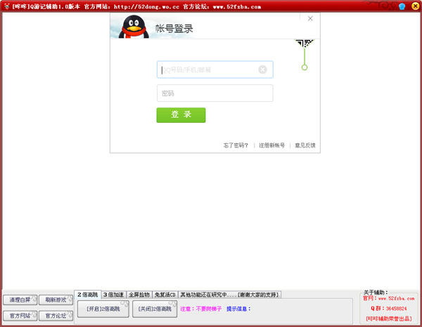 咚咚Q游记辅助是一款针对页游平台Q游记而设计制作的游戏辅助工具,本Q游记辅助工具拥有清理白屏、全屏捡物、免复活CD、高跳加速等等强大功能,更多精彩功能在后续更新中展示,欢迎下载使用。