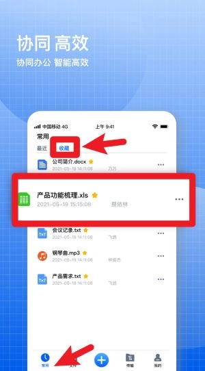 3、轻点底部的“常用”按钮,进入主界面。随后切换到“收藏”标签页,就能迅速查看常用的重要文档。