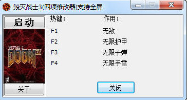 F1 无敌 F2 无限护甲 F3 无限子弹 F4 无限手雷