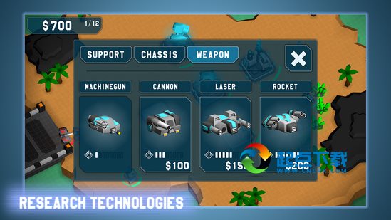 机械战争MechCom - 3D RTS是一款类似于星际争霸的即时战略游戏,玩过RTS特别是星际的朋友上手会很容易,玩家在每一盘游戏中需先建立采集点,让农民去采集矿石,扩充你的腰包里的票子,以便后续的扩张发展。然后接下来就是建造出兵建筑。本作的设定是这样的,玩家可以通过搭配战争兵器的上半部火力武器和下半身移动护甲部分来自由搭配你的武装形态。建筑相应的上下半身建筑后,即可在右下角点选相应的兵种建造啦。在操控上,双击一个单位时,可全选附近的所有对应兵种,轻击屏幕某地后即可移动到该位置。点击敌人单位进行攻击。【更新日志】