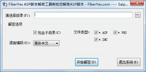 FiberYes ASP加密器用来批量解密经过加密过的ASP文件使用说明请软件中指定要加密的ASP代码目录然后点击开始加密对个人来说,可以用来加密我们的ASP代码以达到混淆的目的