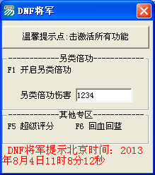 F1 开启另类倍功(看自己的武器有没有变化 进图开启出图自动关闭 在进在开必须图里面开启)